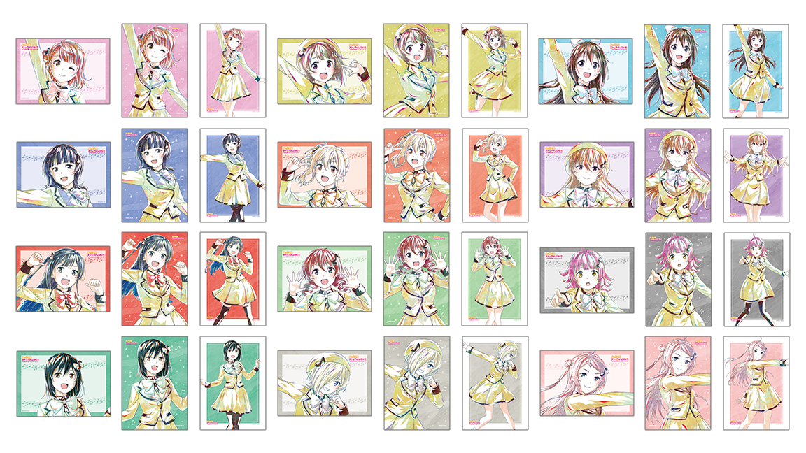 種類 :全12種(上原 歩夢、中須 かすみ、桜坂 しずく、朝香 果林、宮下 愛、近江 彼方、優木 せつ菜、エマ・ヴェルデ、天王寺 璃奈、三船 栞子、ミア・テイラー、鐘 嵐珠)