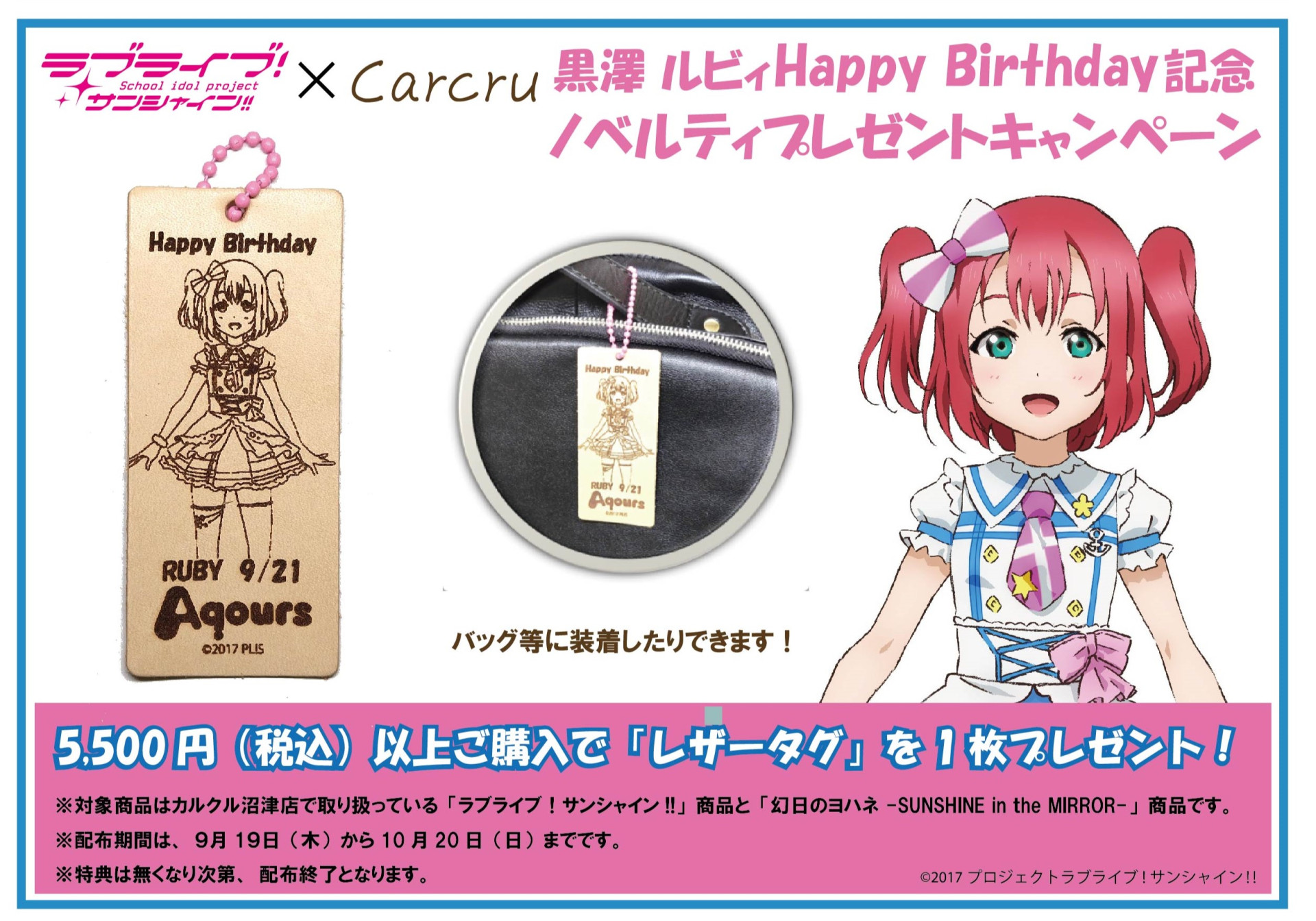 桜内 梨子ちゃん・黒澤 ルビィちゃんのお誕生日を記念して、カルクル沼津店にて「ラブライブ!サンシャイン!!」