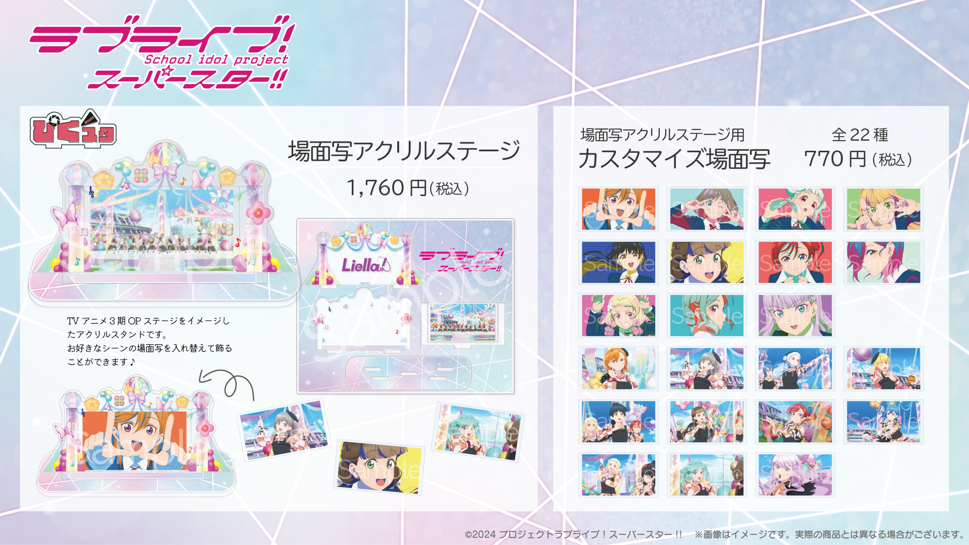 種類:全11種(【澁谷 かのん Ver.】【唐 可可 Ver.】【嵐 千砂都Ver.】【平安名 すみれ Ver.】【葉月 恋 Ver.】【桜小路 きな子 Ver.】【米女 メイ Ver.】【若菜 四季 Ver.】【鬼塚 夏美 Ver.】【ウィーン・マルガレーテ Ver.】【鬼塚 冬毬 Ver.】)