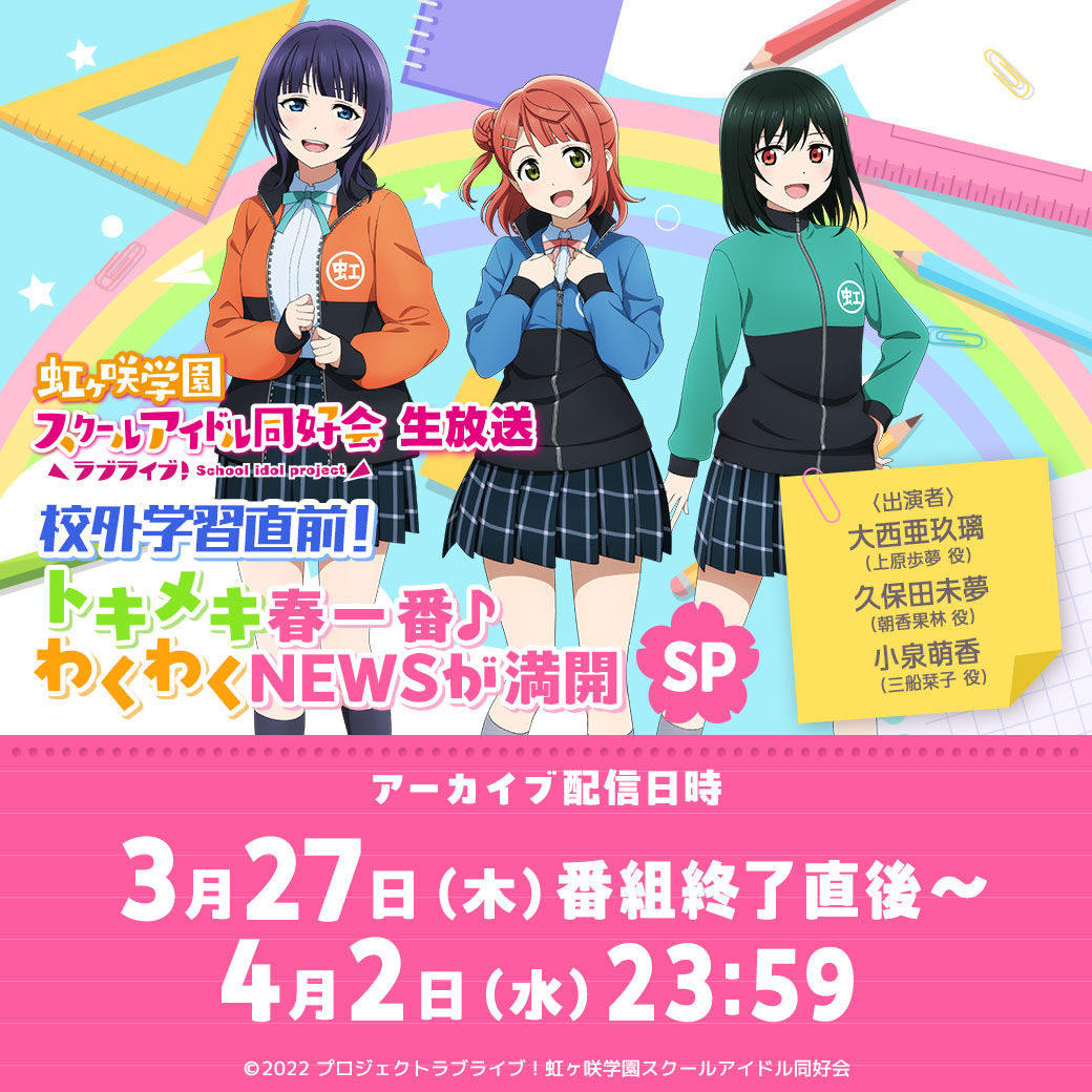 虹ヶ咲学園スクールアイドル同好会より3人のメンバーが出演する生放送番組のお知らせです!