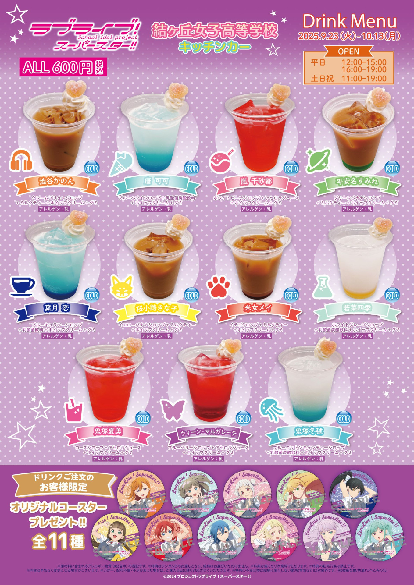 下記期間でバースデー記念ドリンクメニューの販売、記念ドリンク購入者様への特典ブロマイドお渡し、のぼりの展示を行います。
