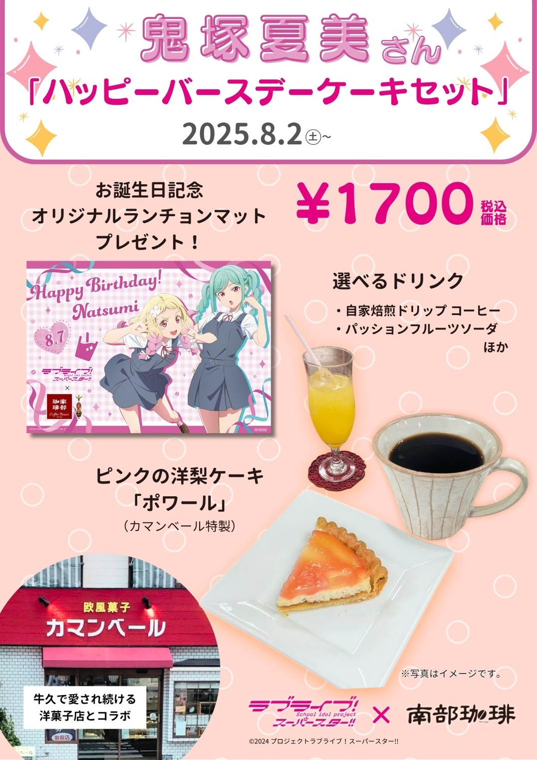 牛久市 南部珈琲より、「鬼塚夏美ハッピーバースデーケーキセット」発売のお知らせ