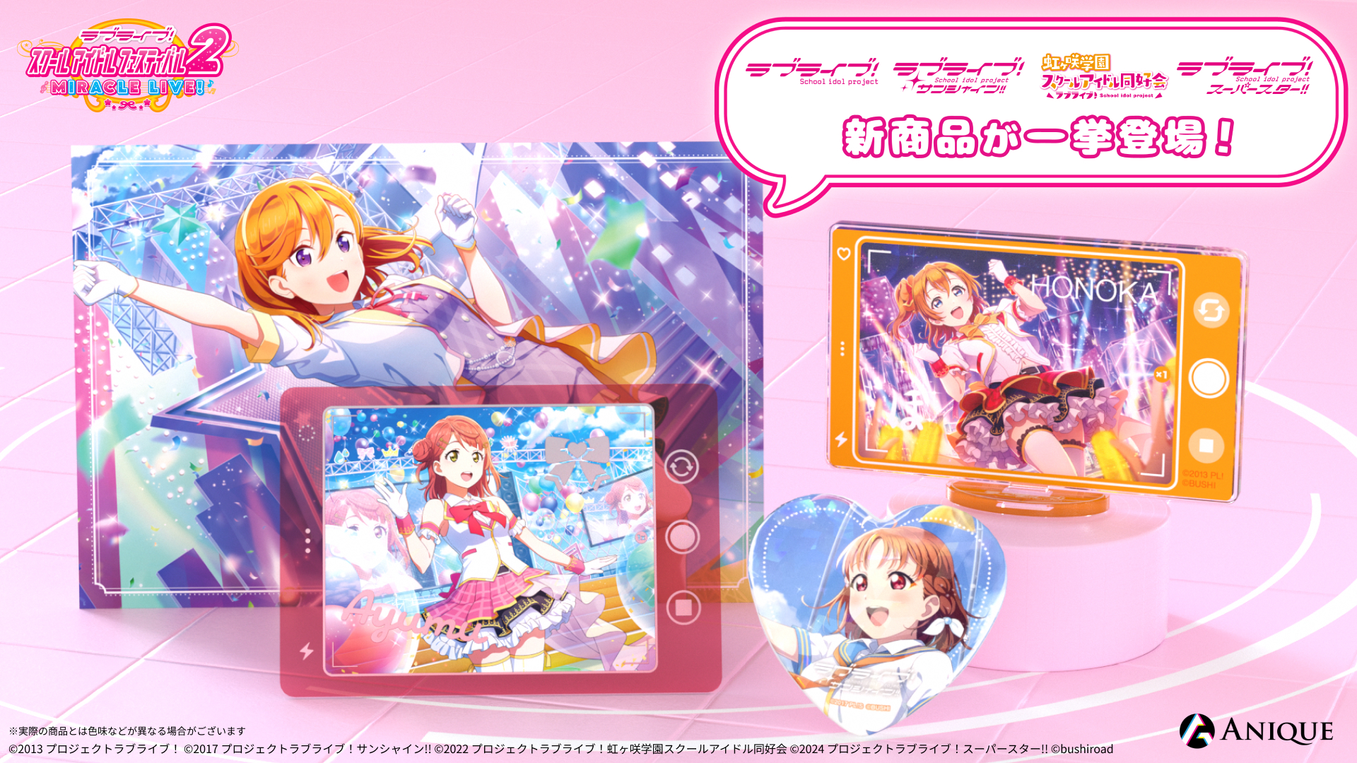 Anique株式会社より、『ラブライブ!スクールアイドルフェスティバル2』μ’s ・ Aqours・ニジガク・Liella!新商品のお知らせ!