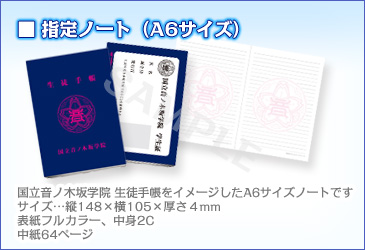 指定スクールバッグ(ミニポーチ型)、指定ノート(A6サイズ)付き